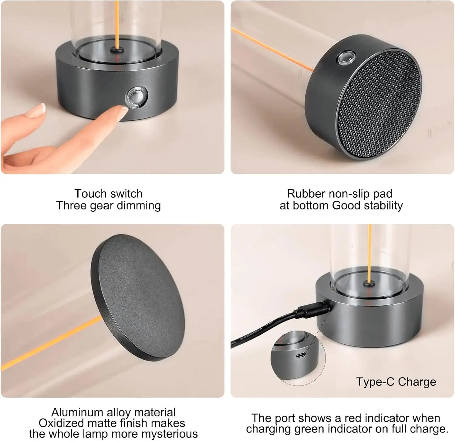 This minimalist rechargeable desk lamp combines modern design with flexible everyday use. Featuring a built-in 2000mAh lithium battery and Type-C fast charging, it delivers cordless lighting that can be used across bedrooms, living spaces, offices, and even outdoor settings like camping.